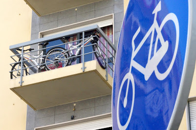 E, quando dei por mim, não consegui passar: mesmo à porta da esquadra de polícia estava a moto que aqui se vê, barrando o caminho aos peões.